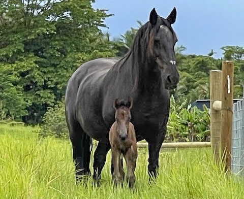 Onyx is about 16, and has been with Burkholder and Fansler for 12 years. They breed their horses, and Uhane was Onyxʻs first foal.