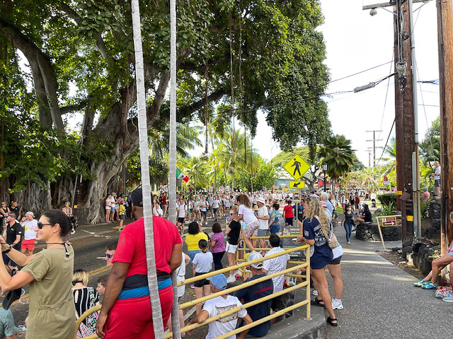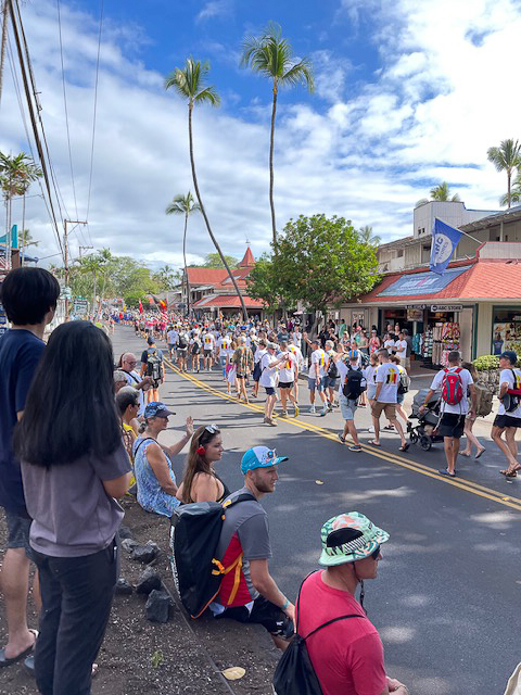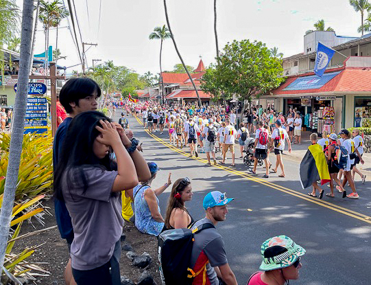 More than a thousand of fans lined both sides of the route along Aliʻi Drive from Kamehameha Beach Hotel to Hale Halawai. The fans and athletes were chanting, singing and cheering during the festive event.