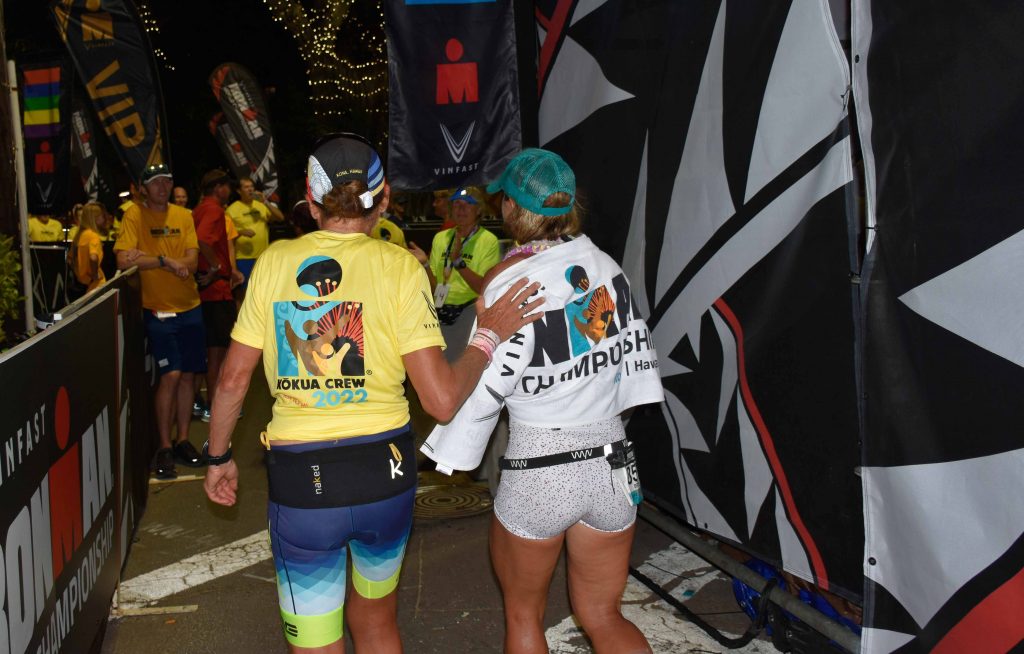 • Bree Wee and Skye Ombac celebrate after finishing the 2022 Ironman World Championship. Photo Credit: Cammy Clark/Big Island Now