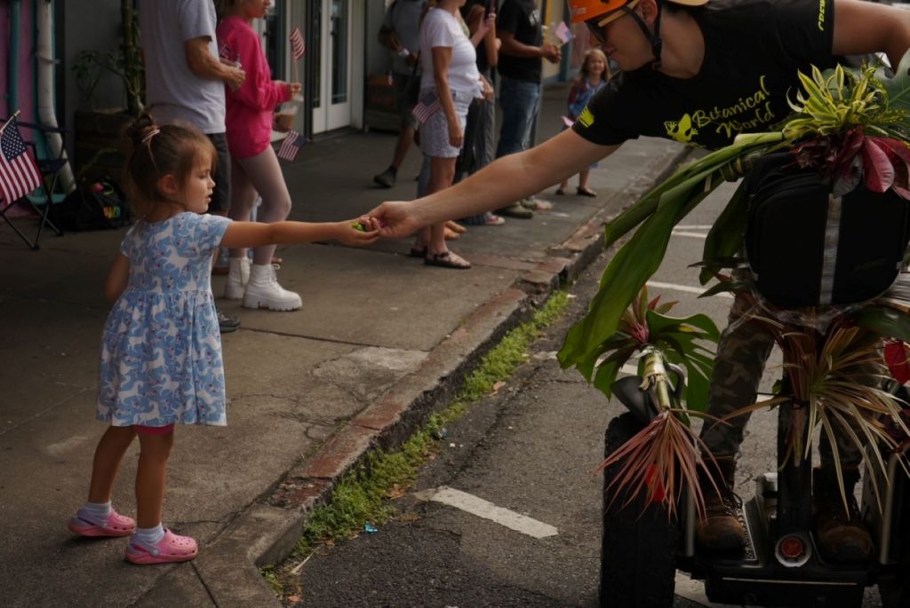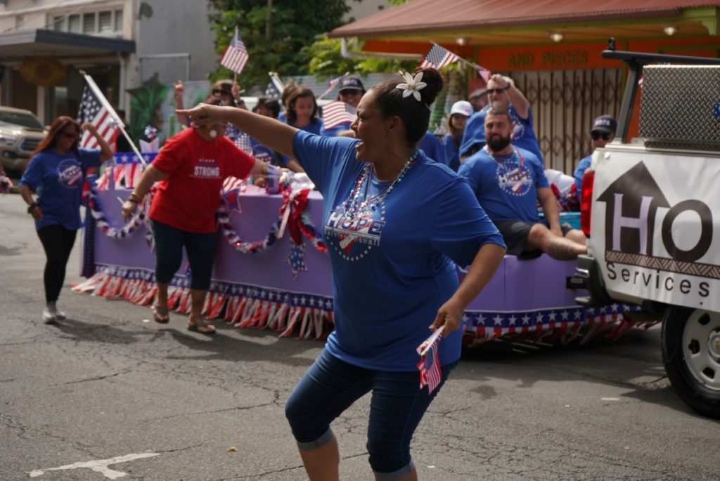 The parade featured 90 units, displaying their patriotic pride with flags, signs and other symbols of America. Many of the hundreds who lined the streets from Wailoa State Recreation Area to Waiānuenue Avenue were decked out in red, white and blue.