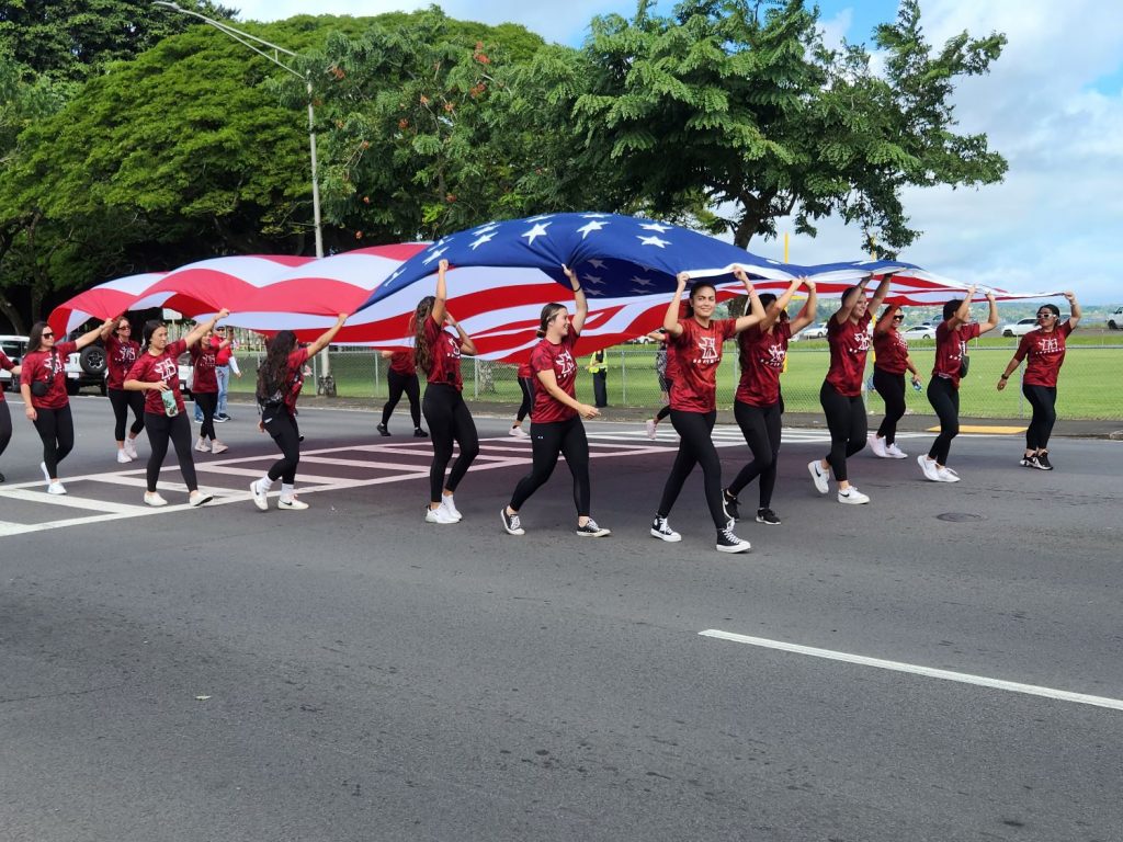 The huge U.S. flag above Kamehameha Avenue in Hilo waved in the wind Saturday morning, while the crowd below celebrated the men and women who dedicated themselves to protecting the country and its freedoms.