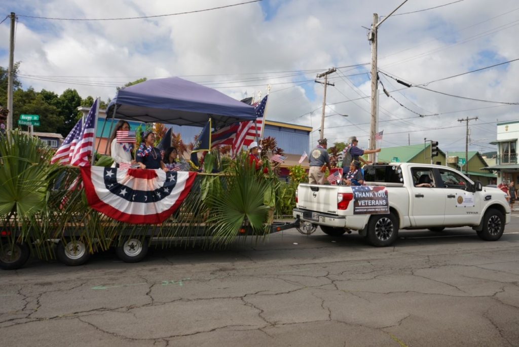 “We’re just grateful for and thankful for all the veterans who served our country for our freedom,” said Victoria Naboa, who watched the parade from Kamehameha Avenue near the Hele gas station.