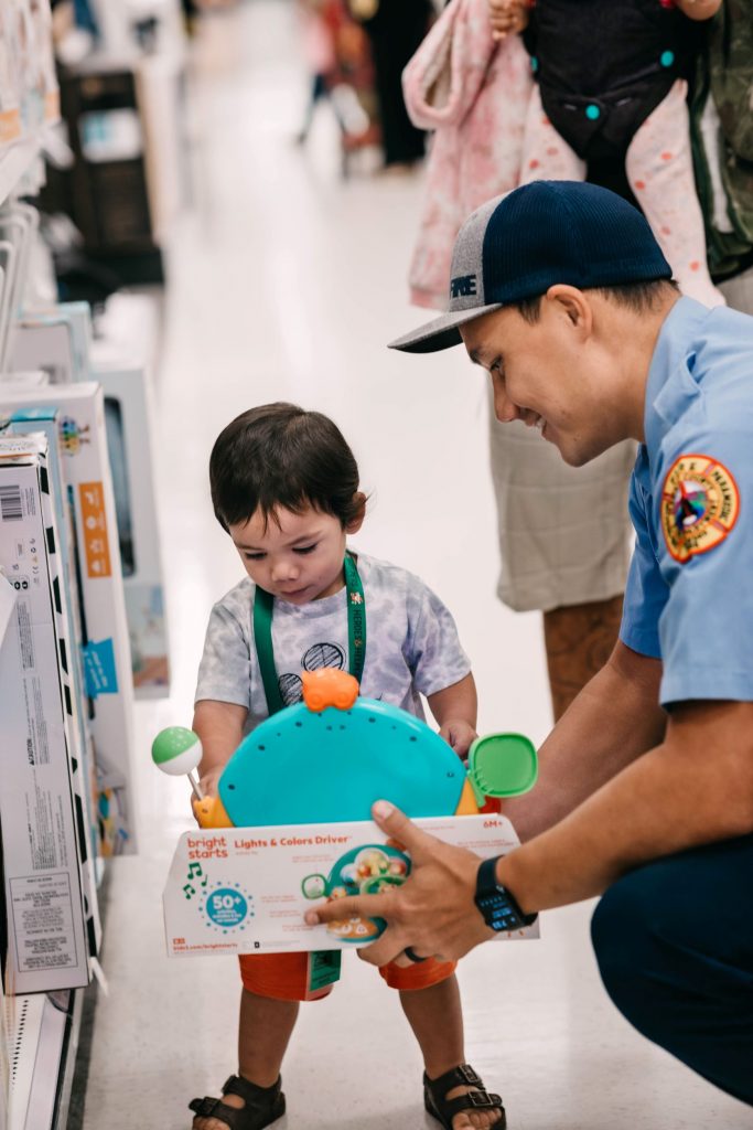 The keiki were each given a $100 gift card and partnered with members of the Hawai‘i Police Department, Hawai‘i Fire Department, Hawai‘i Air and Army National Guard, Hawai‘i Department of Land and Natural Resources 2022 recruitment class and other “hero and helper” agencies to shop for whatever they wanted. The gift cards were made possible through donations from Catholic Charities Hawai‘i, Target Corp. and several other businesses and agencies.