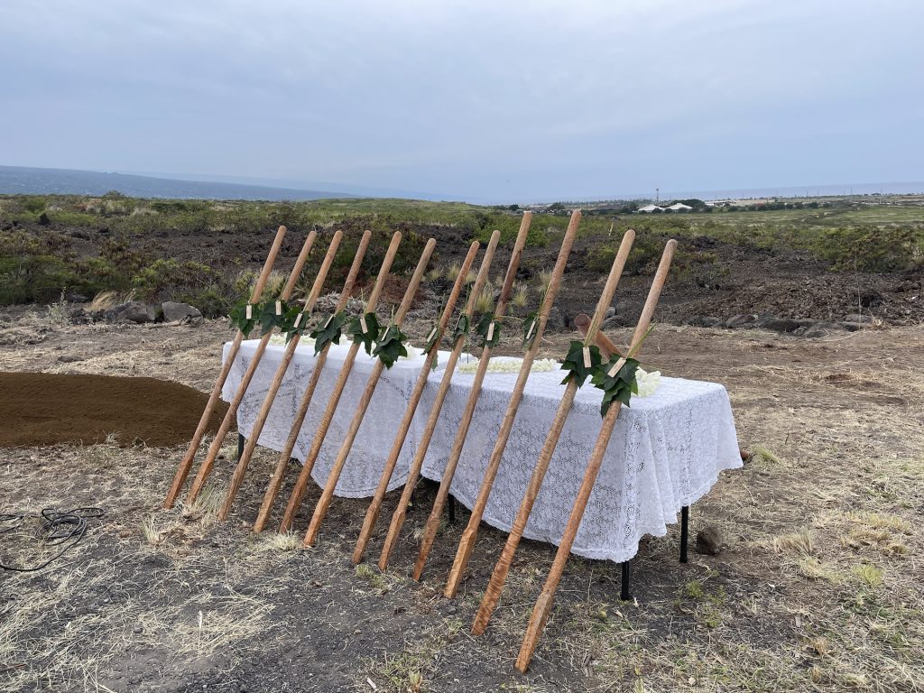 As the ceremony came to a close, Green, Roth, council members and others involved in the project approached a mound of dirt holding an oo, or digging stick, and flung the freshly turned dirt to end the groundbreaking.