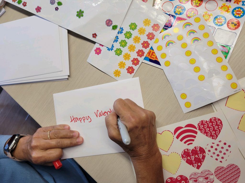 Other members of the Cupid Crew delivered Valentine’s Day cards last week at the Hawai‘i Island Adult Care and on Tuesday to clients of Meals on Wheels. AARP Hawai‘i distributed about 6,400 roses and 700 Valentine’s cards throughout the state Tuesday to bring love and social connection to kūpuna.