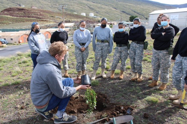 Ten female cadets from the Hawai’i National Guard Youth Challenge Academy planted native trees last month at the U.S. Army Garrison Pōhakuloa Training Area.