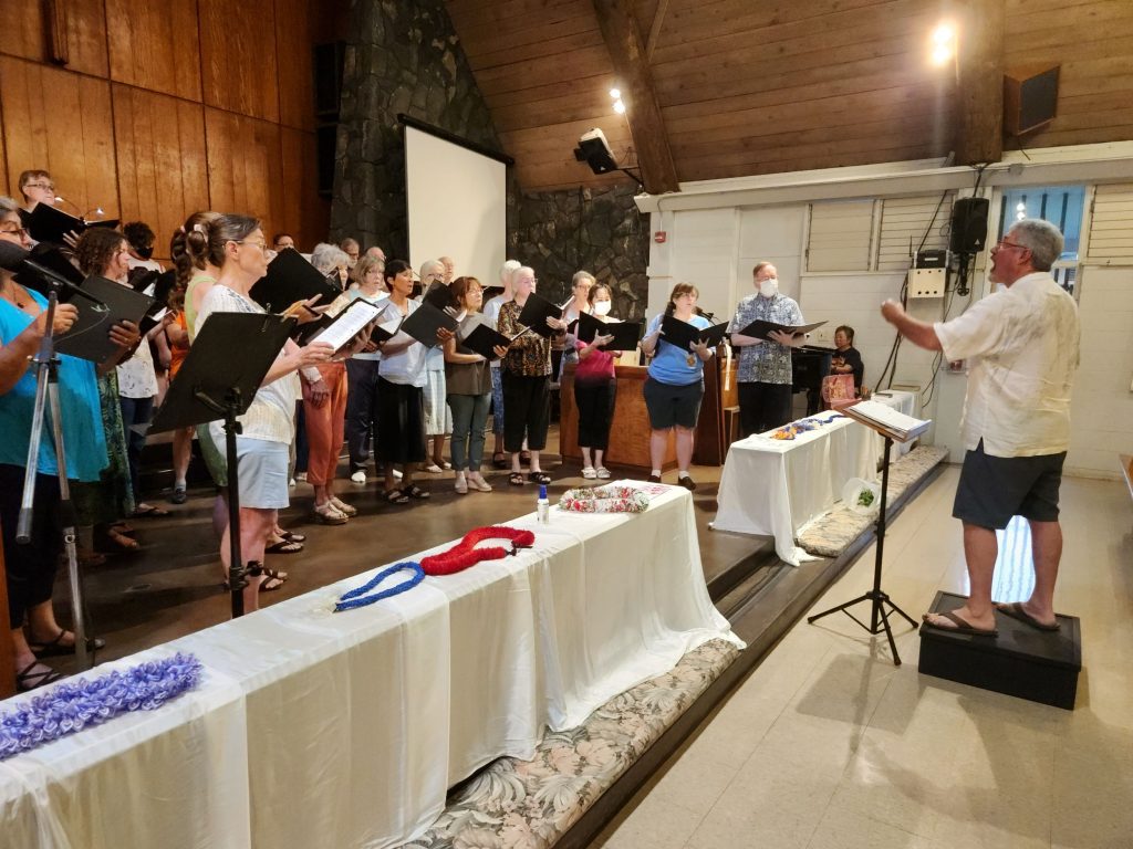 To test the waters, he put together a short Christmas performance last year that featured a small group of people who are now members of Big Island Singers. That led to the creation of the new choir, which began weekly practices Feb. 1 at the Methodist church on Waiānuenue Avenue.