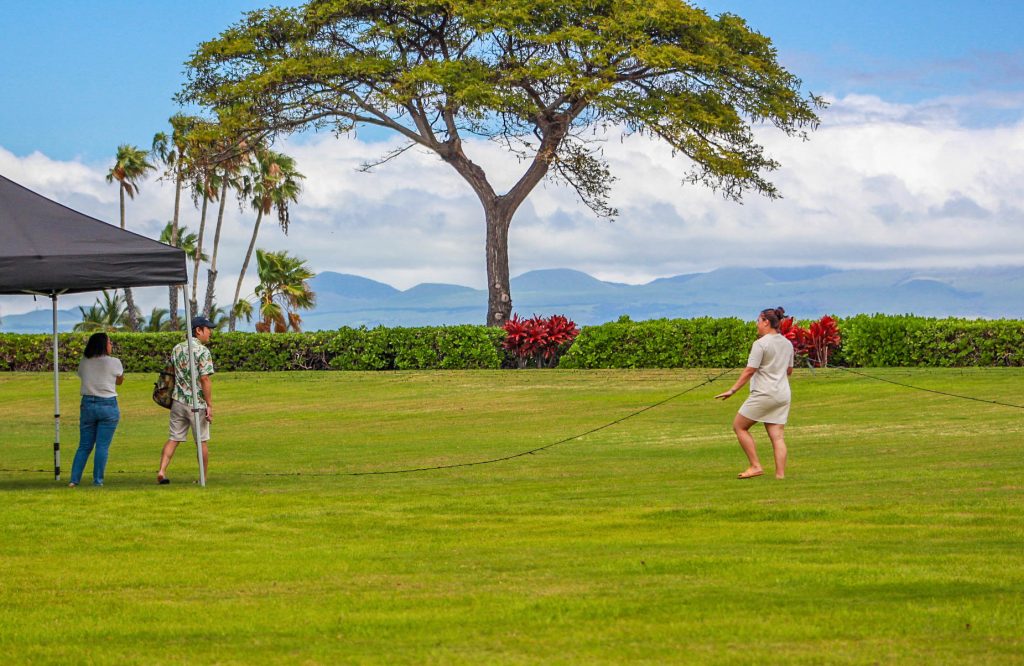 Pua Ka‘ahanui, a cultural ambassador at the resort, said she was proud to be a part of the goal to bring awareness and mindfulness to guests and to help them learn about the stories of her home. She was there Monday morning with her hula sister and cousin, and said she helped to teach guests more about what lei making means to Hawai’i during the process.