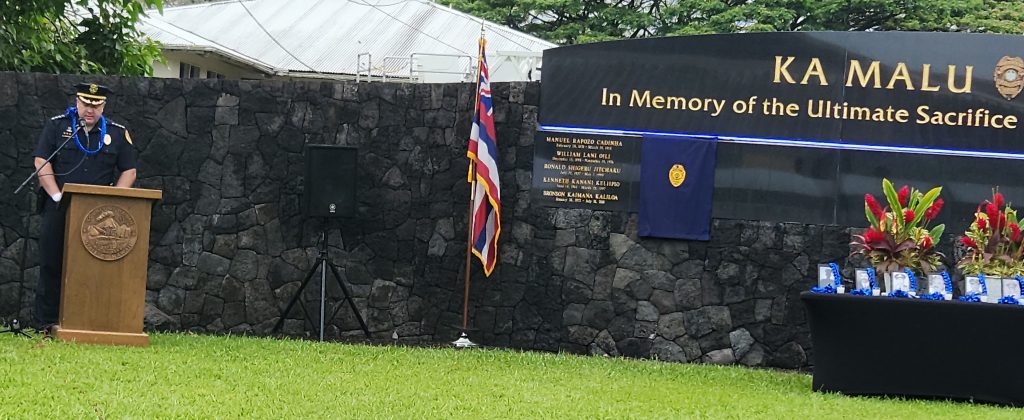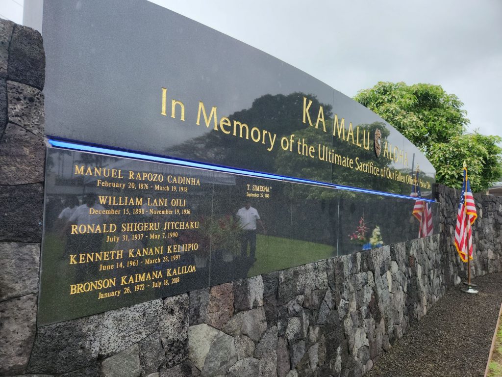His engraved name joins those of five other Big Island officers and one park ranger who also paid the ultimate sacrifice while serving and protecting their community.