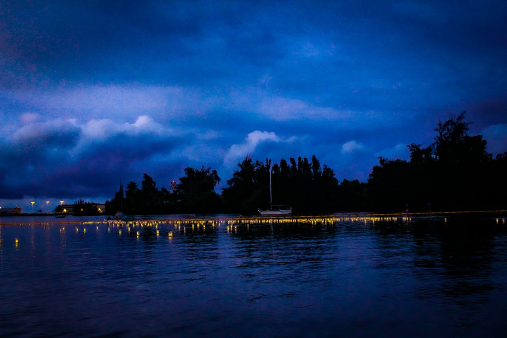 After the dancing and music, the hundreds of participants headed to Reeds Bay in the rain with their lanterns and watched peacefully as they entered the water just before sunset.