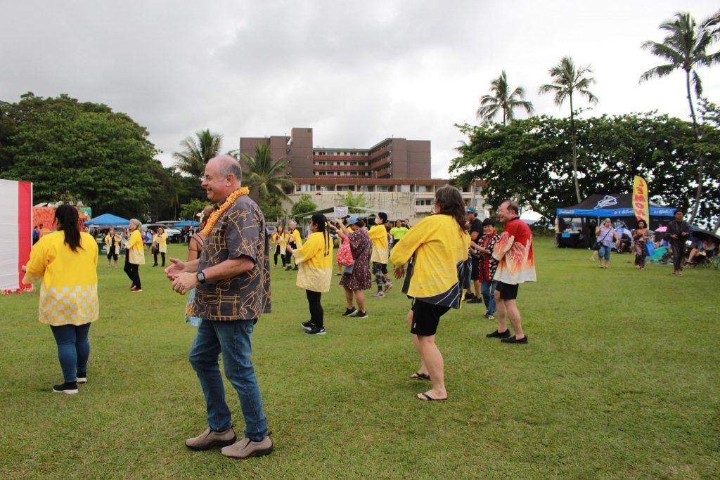 Sunday’s celebration also marked the beginning of the 2023 Obon season for the island. Obon, typically celebrated in the fall in Japan, is a Buddhist tradition that honors the spirits of one’s ancestors. The dance was led by Hilo’s Bon Dance Club from the Meishon Temple, and it was the first time they performed since COVID-19.