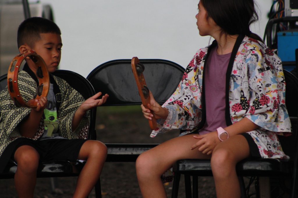 Local keiki play along with taiko drummers during the 19th Annual Celebration of Life at Reeds Bay in downtown Hilo on Sunday. Photographed on May 28, 2023. Hawai’i Life Choices spearheads the annual lantern lighting each year. (Megan Moseley/Big Island Now).