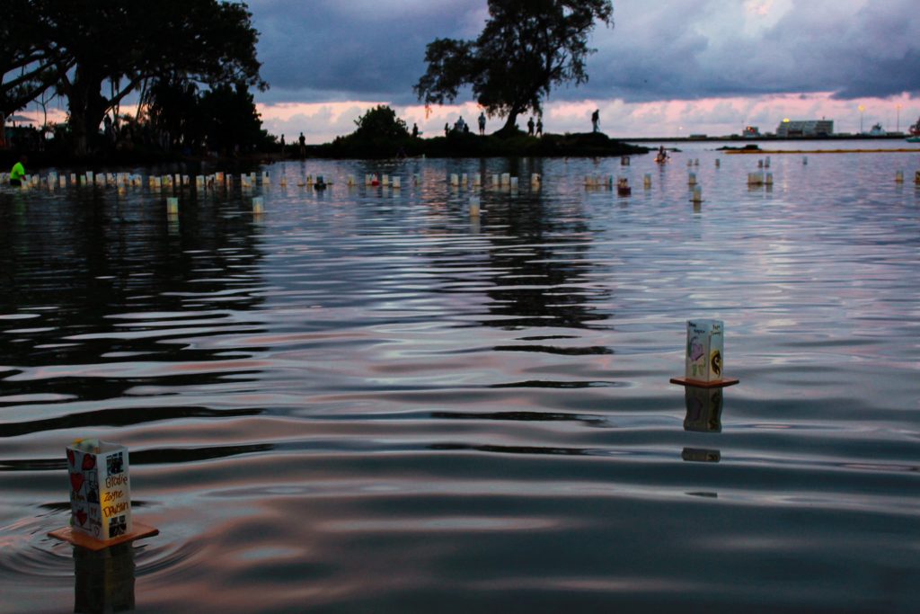 More than 1,000 lighted lanterns floated in Reeds Bay Beach Park in Hilo Sunday evening for the 19th Annual Celebration of Life ceremony.