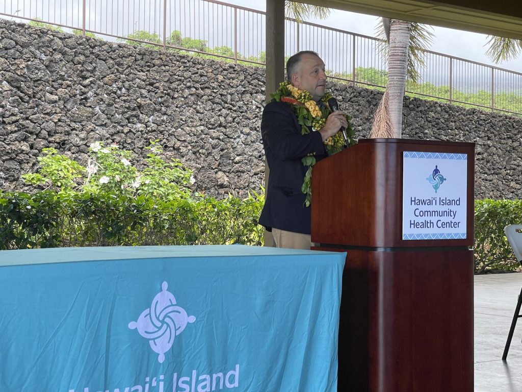 Hawai‘i Island Community Health Center CEO Richard Taaffe also spoke to the crowd gathered at an outside pavilion at the Kealakehe clinic.