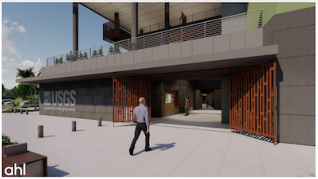 An artist’s rendition of the new Hawaiian Volcano Observatory facility designed by Architects Hawai‘i Ltd. from the draft environmental assessment for the research campus. The new U.S. Geological Survey facility in Hilo where the observatory will be housed will also include the Pacific Island Ecosystems Research Center. (Screenshot from environmental assessment)