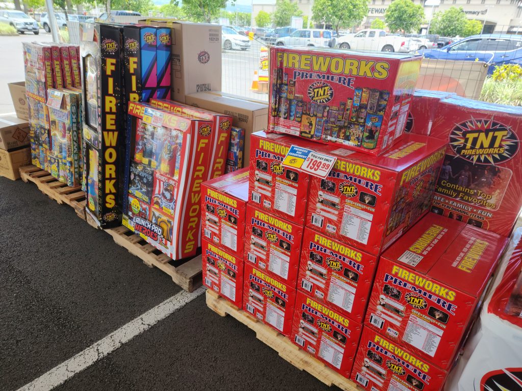 On June 29, TNT Fireworks opened up a pop-up fireworks tent in the Hilo Safeway parking lot. Itʻs the only one in Hilo. It’s open 8 a.m. to 9 a.m. Monday and 6 a.m. to 8 p.m. Tuesday, before shutting down until New Year’s Eve rolls around.