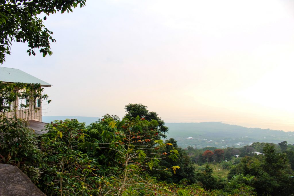 It’s called Kahauloa Estate Coffee, name after the Ahupua’a (subdivision of land) where it is grown. The coffee plants are on the mountainside directly below their lanai at an elevation of 1,400-feet. Kahuauloa refers to the morning wind that sweeps down into the long valley.