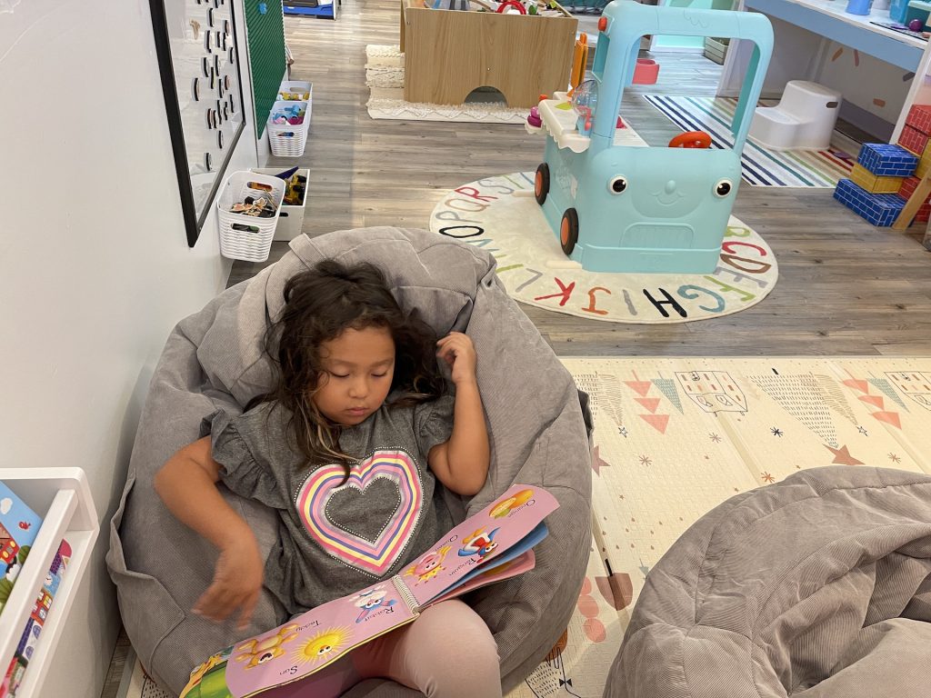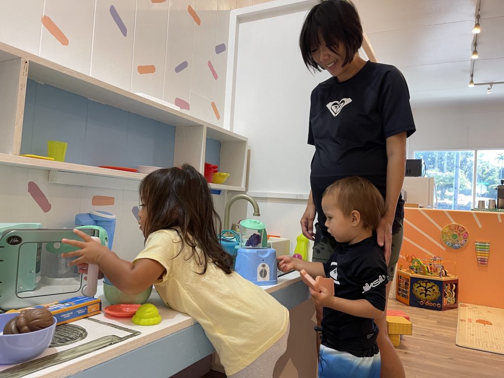 Reynoso said the indoor playground allows her to breathe a little because she can see her kids at all times in the different areas of play. At one point, Makani was “cooking” up something in the kitchen with Kai while Aria sat in the bean bag chair reading a book.