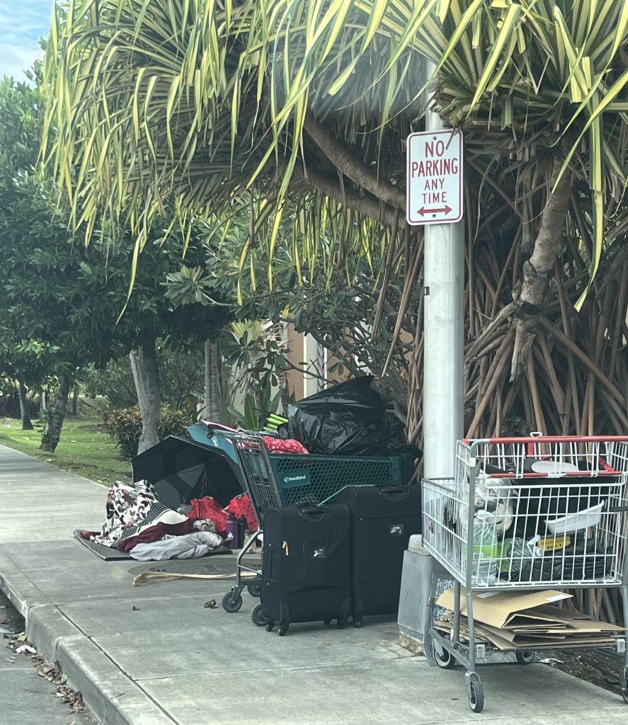 Nearly two miles away from the store, an empty Walmart shopping cart is abandoned along Kuakini Highway near Pottery Terrace. In the heart of Kailua Village, the carts, sometimes loaded with clothes or trash, are strewn about from Ali‘i Drive to Henry Street and everywhere in between.