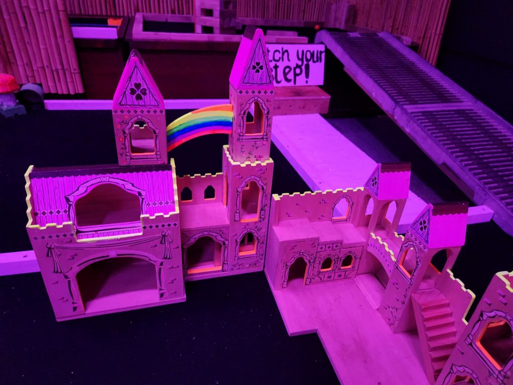 The entire course, which was built by Gam3Escape employee Drew Iverson and detailed by Chose with the help of her sister and mother, glows as neon paint and other adornments shine bright under the black lights above, adding to the fun and enhancing the experience.