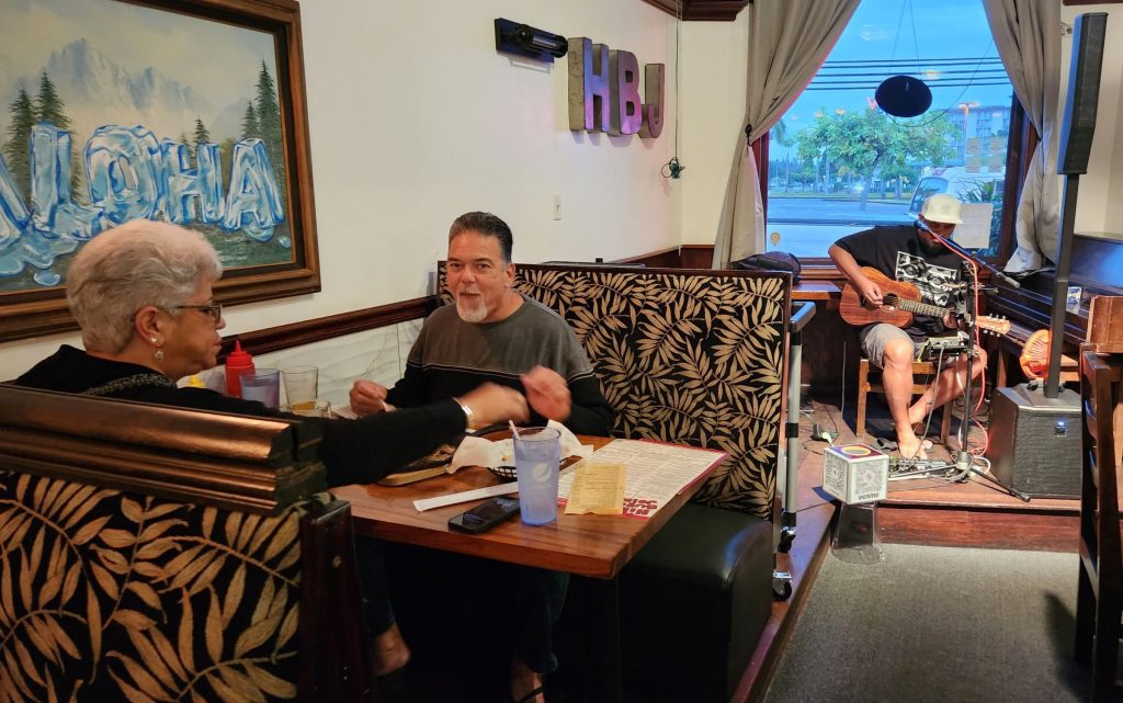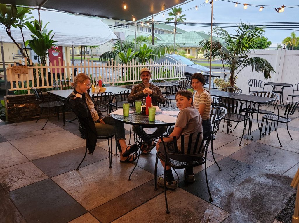 “It’s somewhere that we’ve been coming since I was a kid,” said his son Evan LaRochelle, who also lives in Hilo. “It’s just family-oriented, good live music and good burgers.”