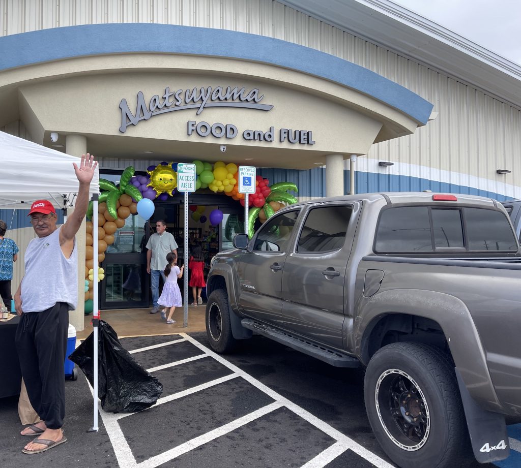 Gathered outside the store on Saturday, Burke Matsuyama, 79, said, the opening is a culmination of fulfilling his father’s mission who opened the mauka Food Mart in 1981, which served North Kona’s Kalaoa community as a local grocery store, offering breakfast, hot bentos, pizza, marinated meats and basic groceries.