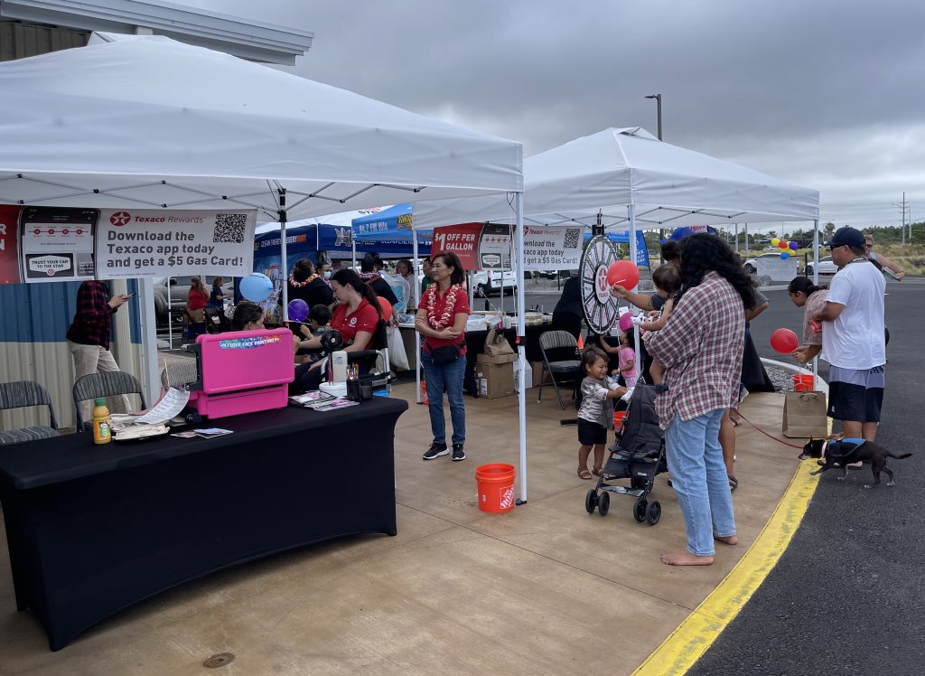 The family patriarch passed out plumeria lei to those who showed up to support the family’s business. Vendors had booths set up for customers to try out samples sold in the store.