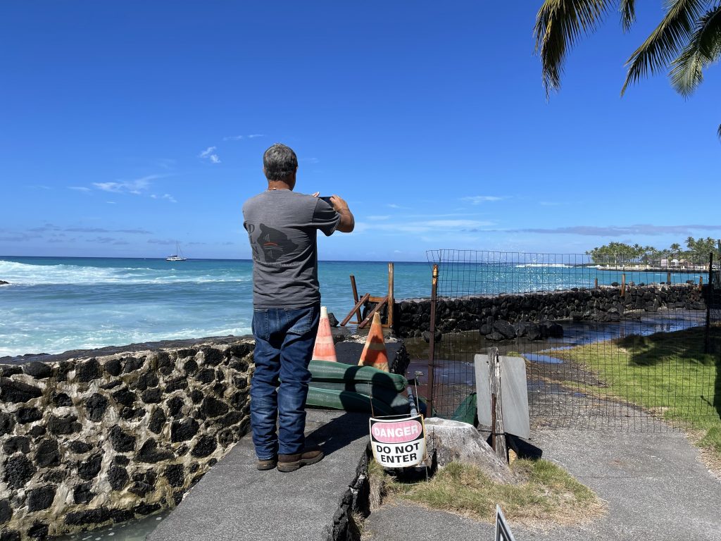 For about seven years, a portion of the seawall at Hulihe‘e Palace in downtown Kona has been blocked with concrete barriers to keep people safe from the potential collapse of the wall, which is eroding way by the ocean.