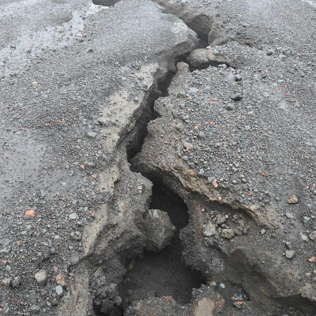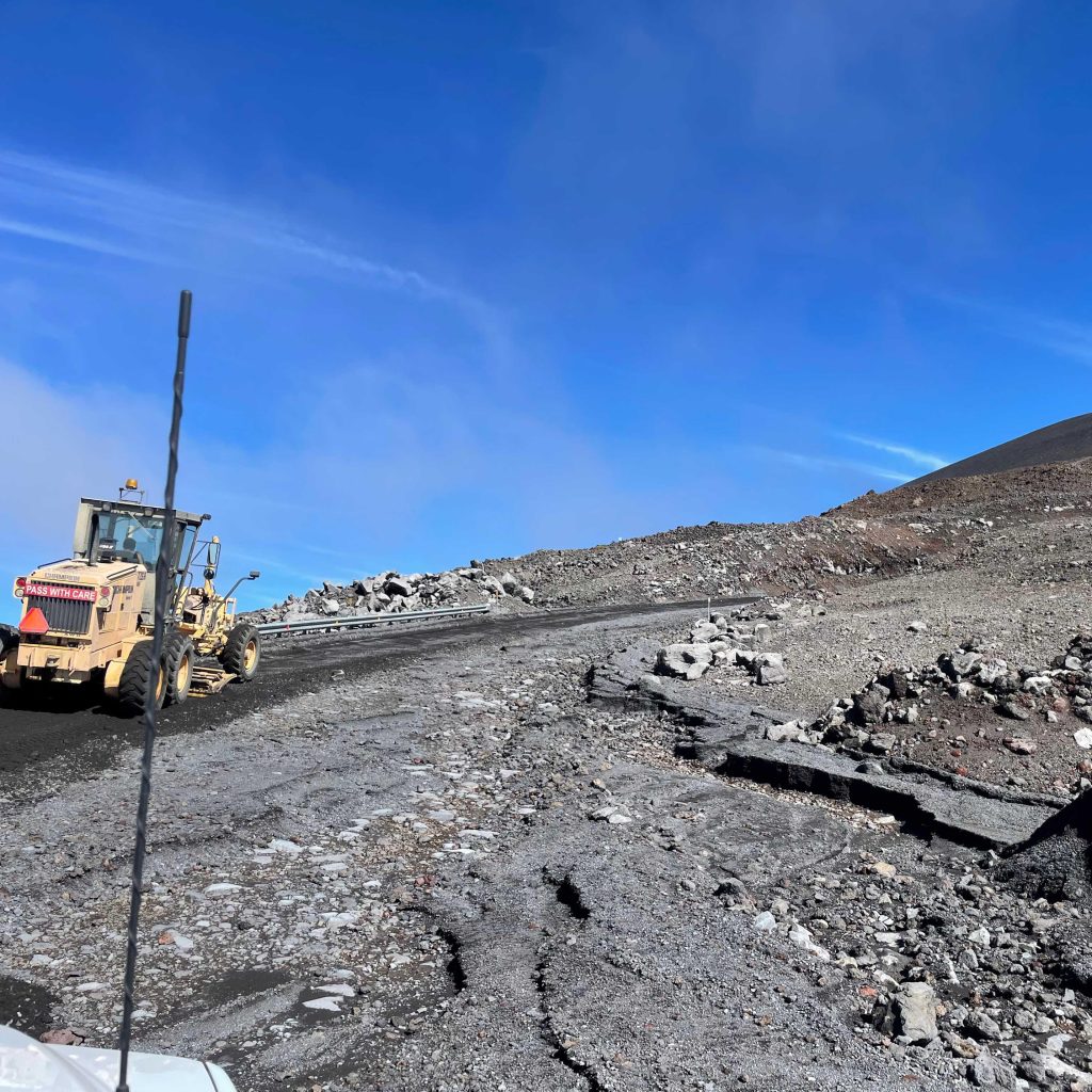• CMS crews tackle road repairs on Mauna Kea with specialized equipment. Photo credit: CMS