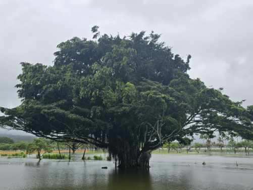 Hone weakened to a tropical storm on Sunday evening as the center passed about 175 miles south of Kaua‘i. As much as 18 inches of rain fell in some areas of East Hawai‘i, flooding roads in the Ka‘ū District and the Bayfront area in Hilo.