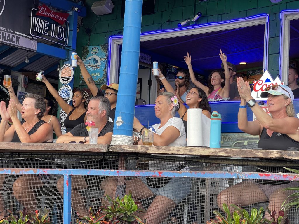 Patrons at the Da Shark Shack threw shakas and cheered as triathletes from around the world walked along Ali’i Drive in downtown Kailua-Kona on Tuesday during the 2024 VinFast Ironman World Championship’’s traditional Parade of Nations.