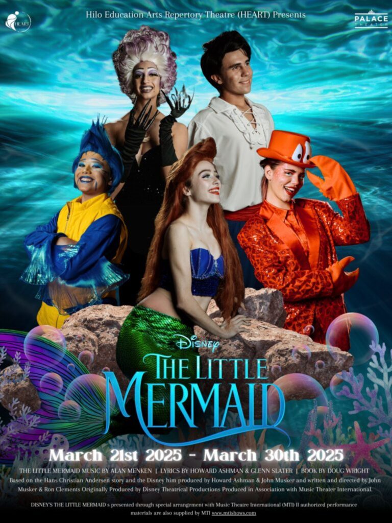 “We are so excited to bring ‘The Little Mermaid’ to the Hilo Palace Theater,” said Aiwohi-Tomlin in information provided by HEART. “This production showcases the talents of our local artists, and we’ve worked tirelessly to create a vibrant and magical experience for our audience.”