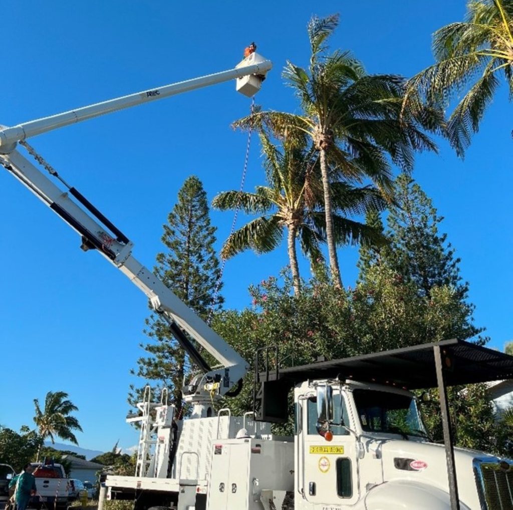 Alameda and Hawai‘i County offered their resources and assistance to the state Agriculture Department in January, including the use of the county’s 75-foot boom truck, to treat crowns of palm trees.