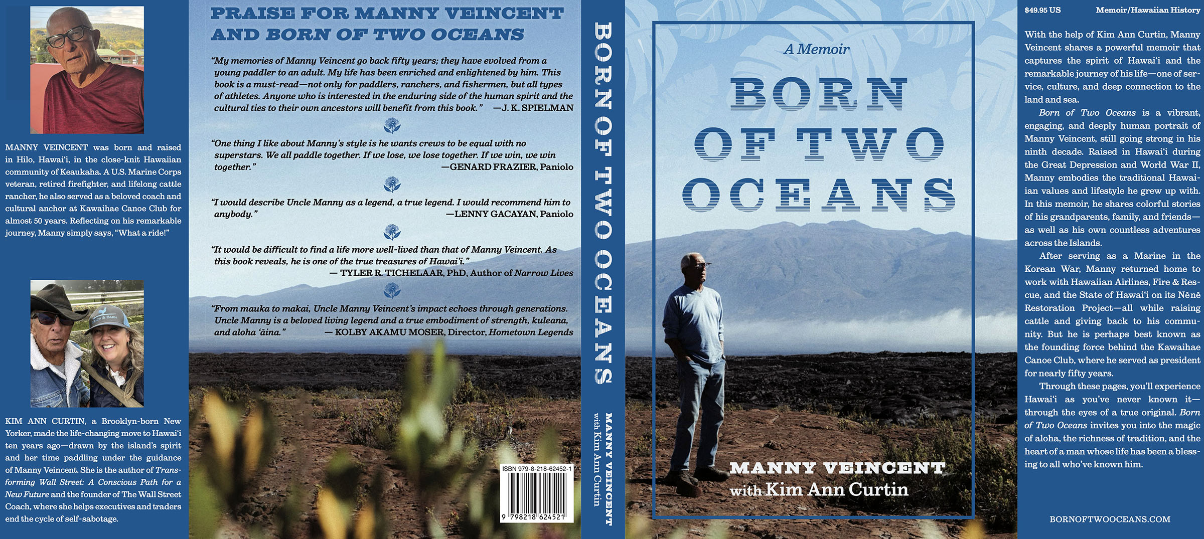 Written with Kim Ann Curtin, “Born of Two Oceans” traces the 93-year-old’s journey from Keaukaha’s rugged shoreline to the lava fields of Mauna Kea, from childhood fishing stories and ʻaumākua shark encounters to fire rescues and coaching championship canoe crews.