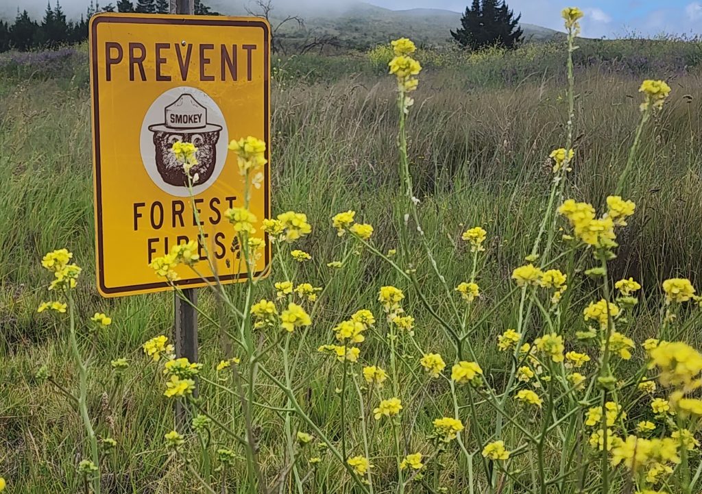 A sign on the north slopes of Mauna Kea, which were experiencing extreme drought as of June 12, urges people to think about fire safety to prevent fires before they start. (Photo Courtesy: Hawai‘i Department of Land and Natural Resources)
