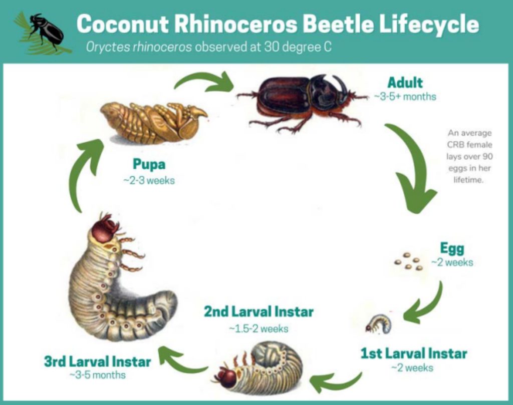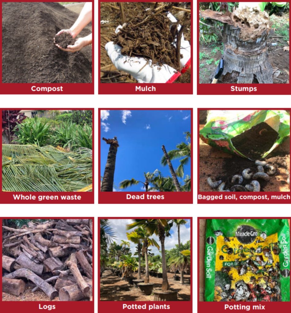 Underscoring the severe impact capable from this invasive species, Hawaiʻi County and Department of Agriculture and Biosecurity issued a 3-month voluntary compliance order to stop the movement of the coconut rhinoceros beetle host materials — which includes compost, wood or tree chips, mulch, plant propagation material, some landscaping materials and several live palm types — for a portion of West Hawaiʻi.