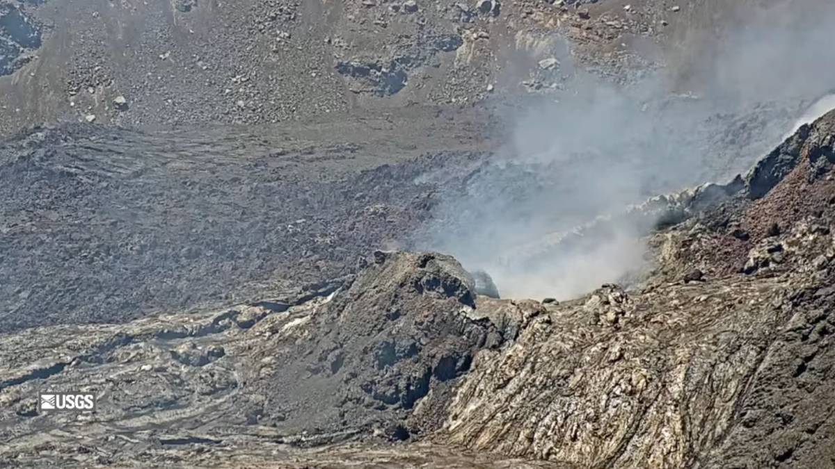 Current hazards include volcanic gas emissions, along with windblown volcanic glass (Pele’s hair) and tephra deposited during earlier eruptive episodes.