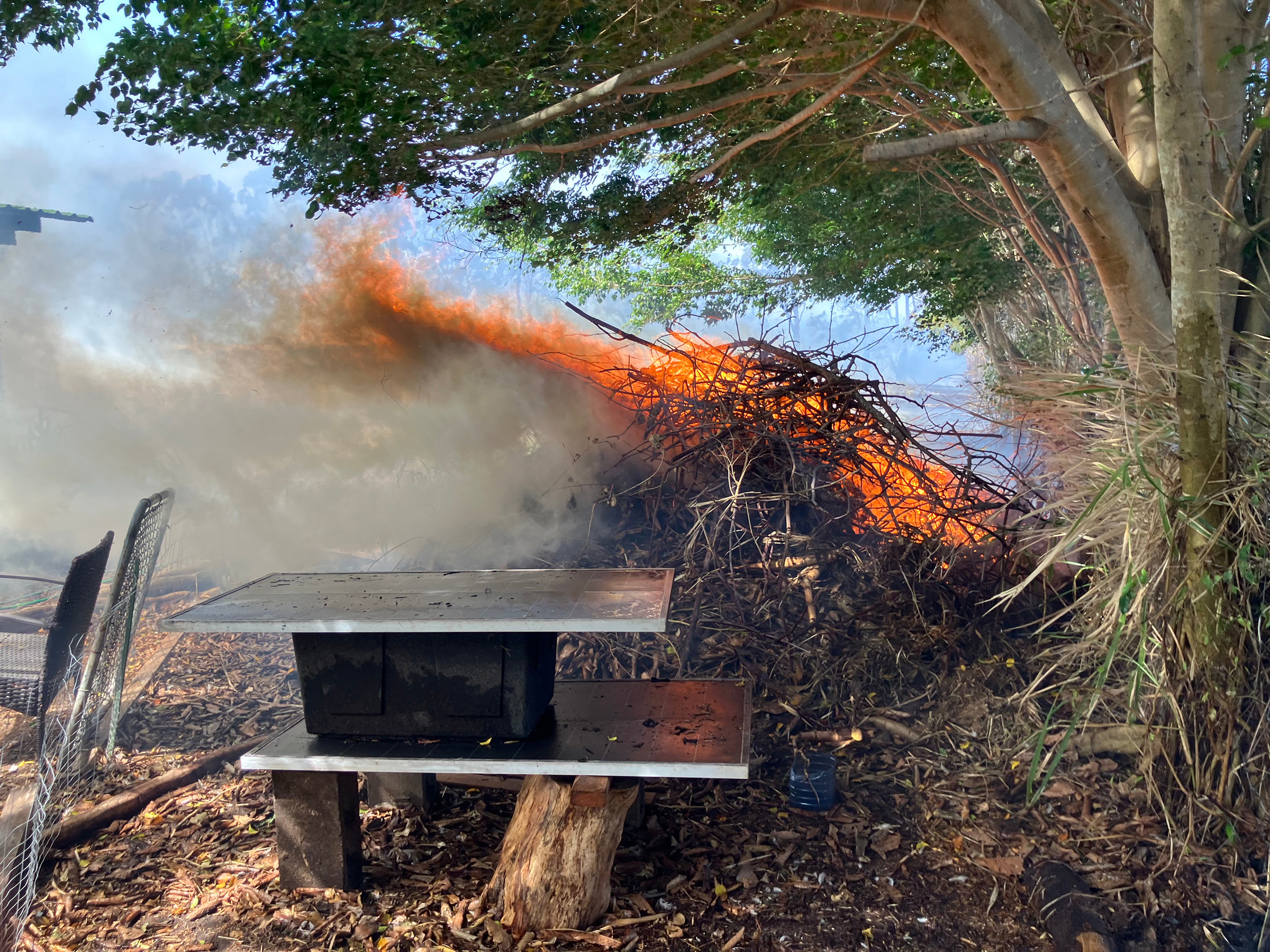KiTeya Belford-Smith thought he and his mother, Cynthia Waymegwance, were in the clear on Friday after a brush fire broke out on Thursday around 2:40 p.m. makai of Highway 19 in Paʻauilo.