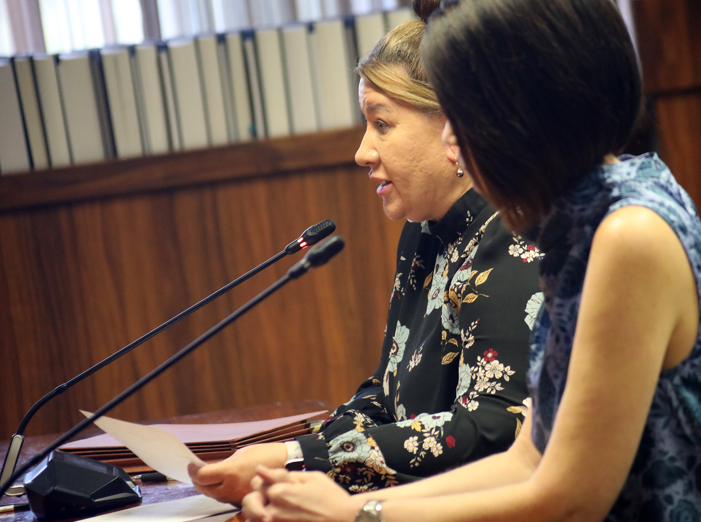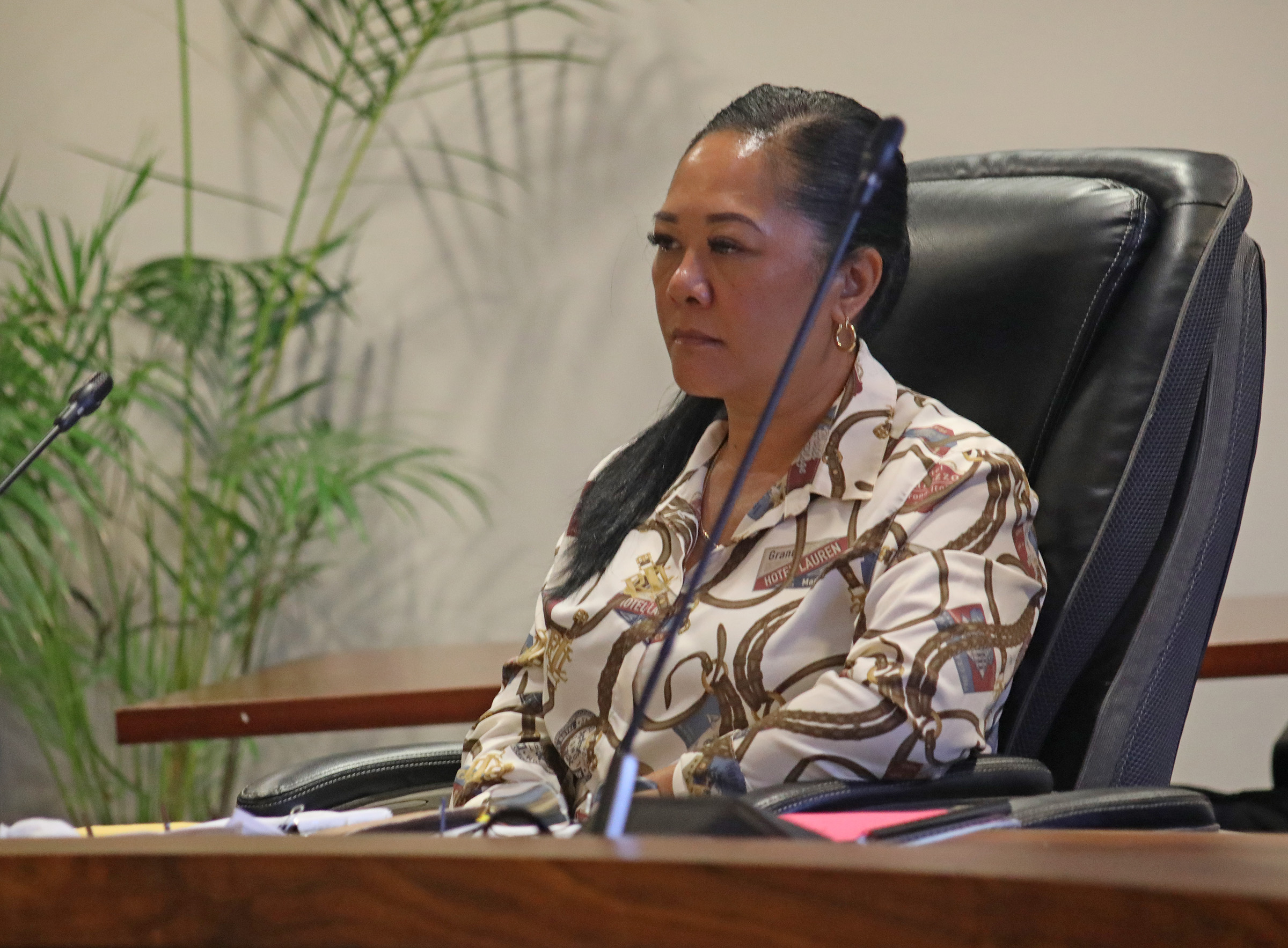 Police commissioner Bernadette Urban-Smith listens to testimony during the Hawaiʻi County Police Commission meeting in Hilo on Friday, Aug. 22, 2025. (Kelsey Walling/Big Island Now)