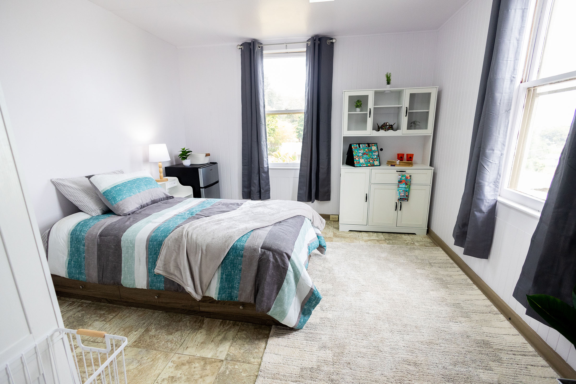 Hale Ulu Lehua features renovated units, upgraded shared bathrooms, a fully expanded communal kitchen, and on-site laundry facilities. Accessibility was a key focus, with the addition of an entry ramp, expanded kitchen with a new dining room, and widened doorways.