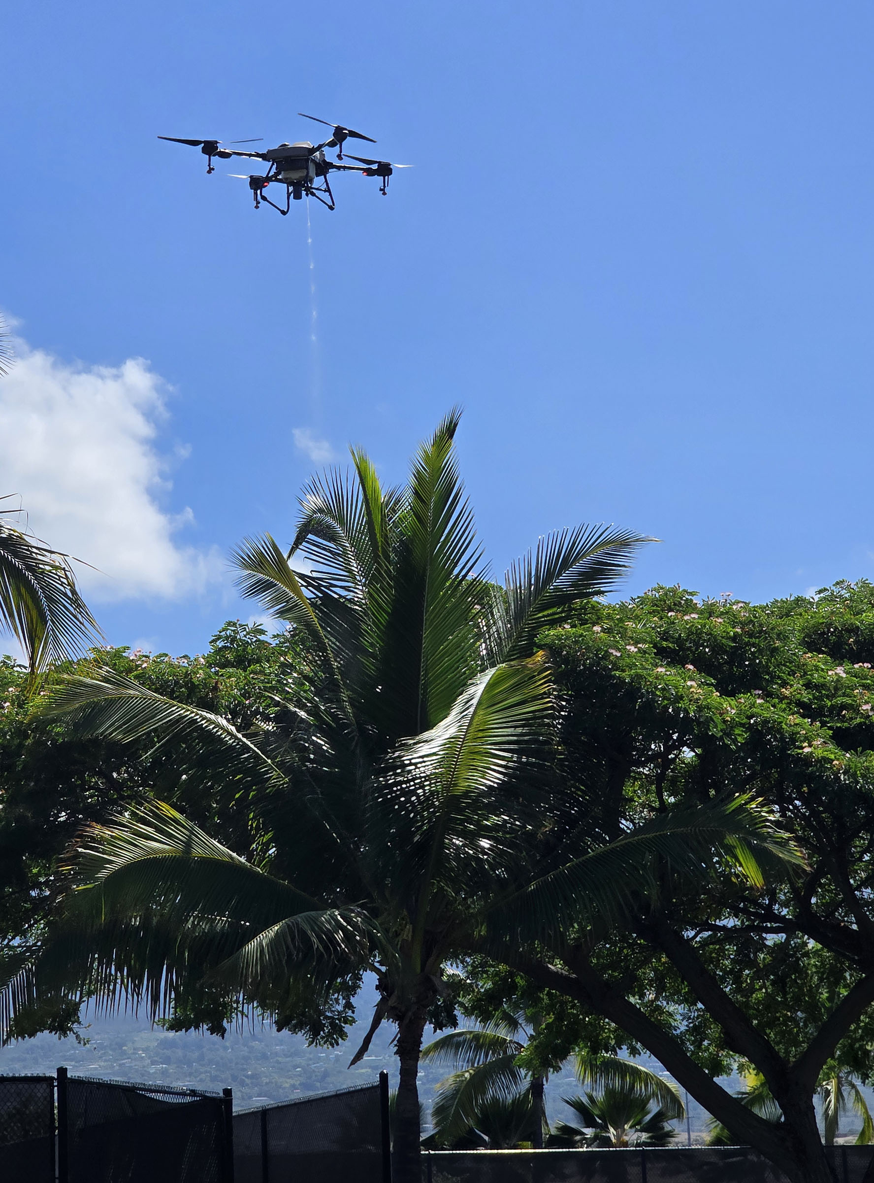 Additional coconut rhinoceros beetle detection traps have been deployed at Keāhole Agricultural Park, and increased surveillance and monitoring will continue in the surrounding areas. Also happening this week, the response teams are using drones to treat palm trees in the Kohanaiki area.