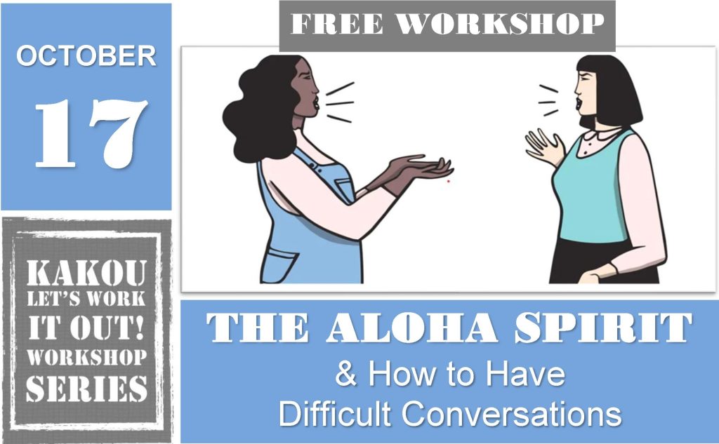 Community members are invited to talk story about “The Aloha Spirit and How to Have Difficult Conversations” during a free public workshop in honor of International Conflict Resolution Day next week.