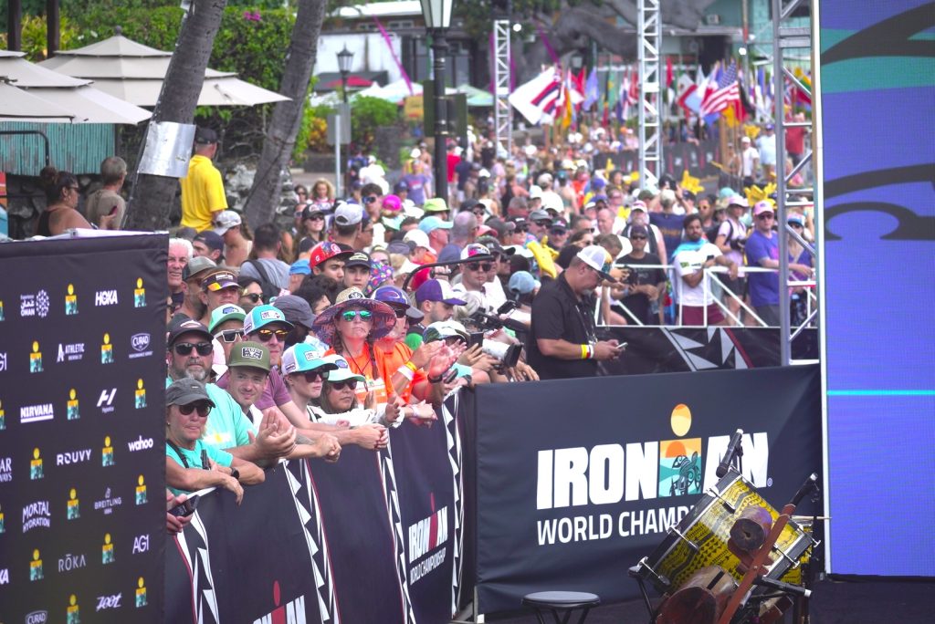 • Crowds at the Ironman World Championship finish line in Kona on Oct. 11, 2025, cried out after watching American Taylor Knibb collapse on the big screen two miles from the Ironman World Championship finish line. (Tiffany DeMasters/Big Island Now)