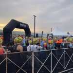 • Swimmers line up by age group for the Ironman World Championship in Kona on Oct. 11, 2025. (Tiffany DeMasters/Big Island Now)