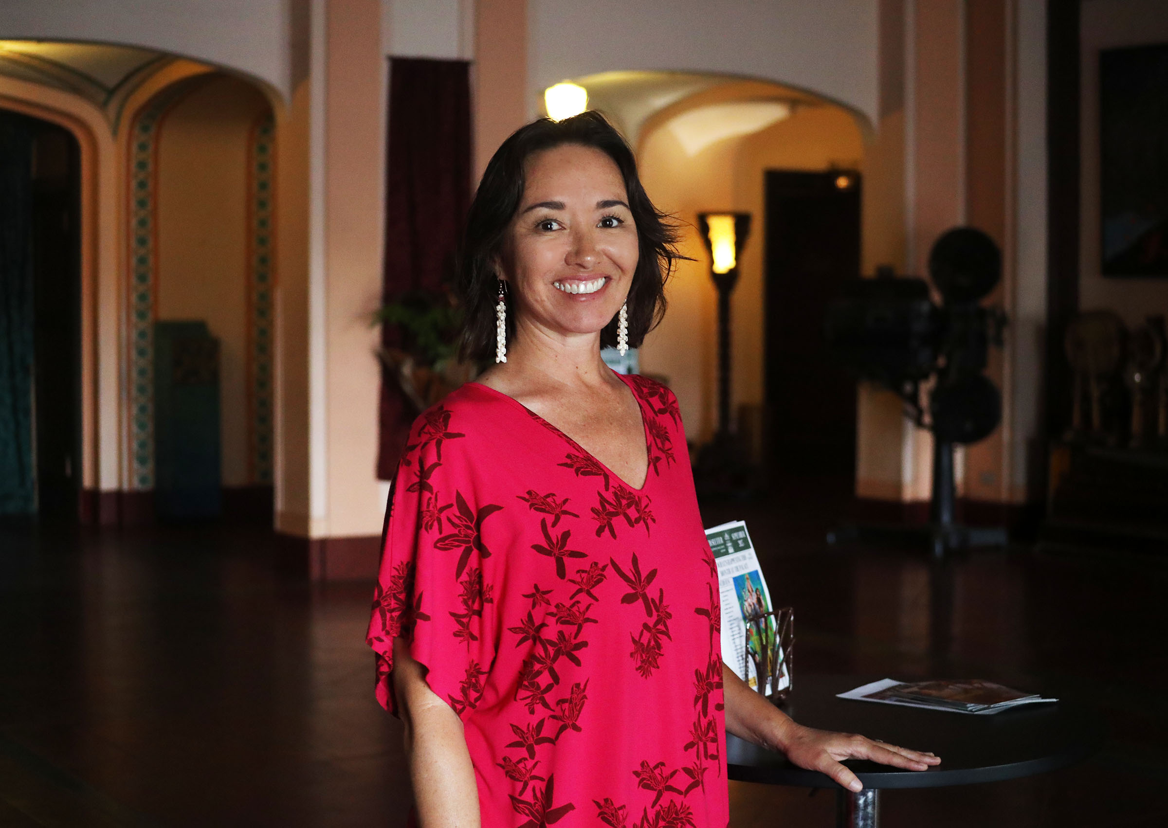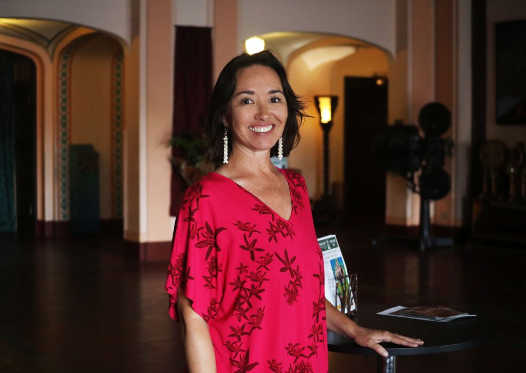 Jennie Kaneshiro poses for a photo in the Hilo Palace Theater lobby. (Kelsey Walling/Big Island Now)
