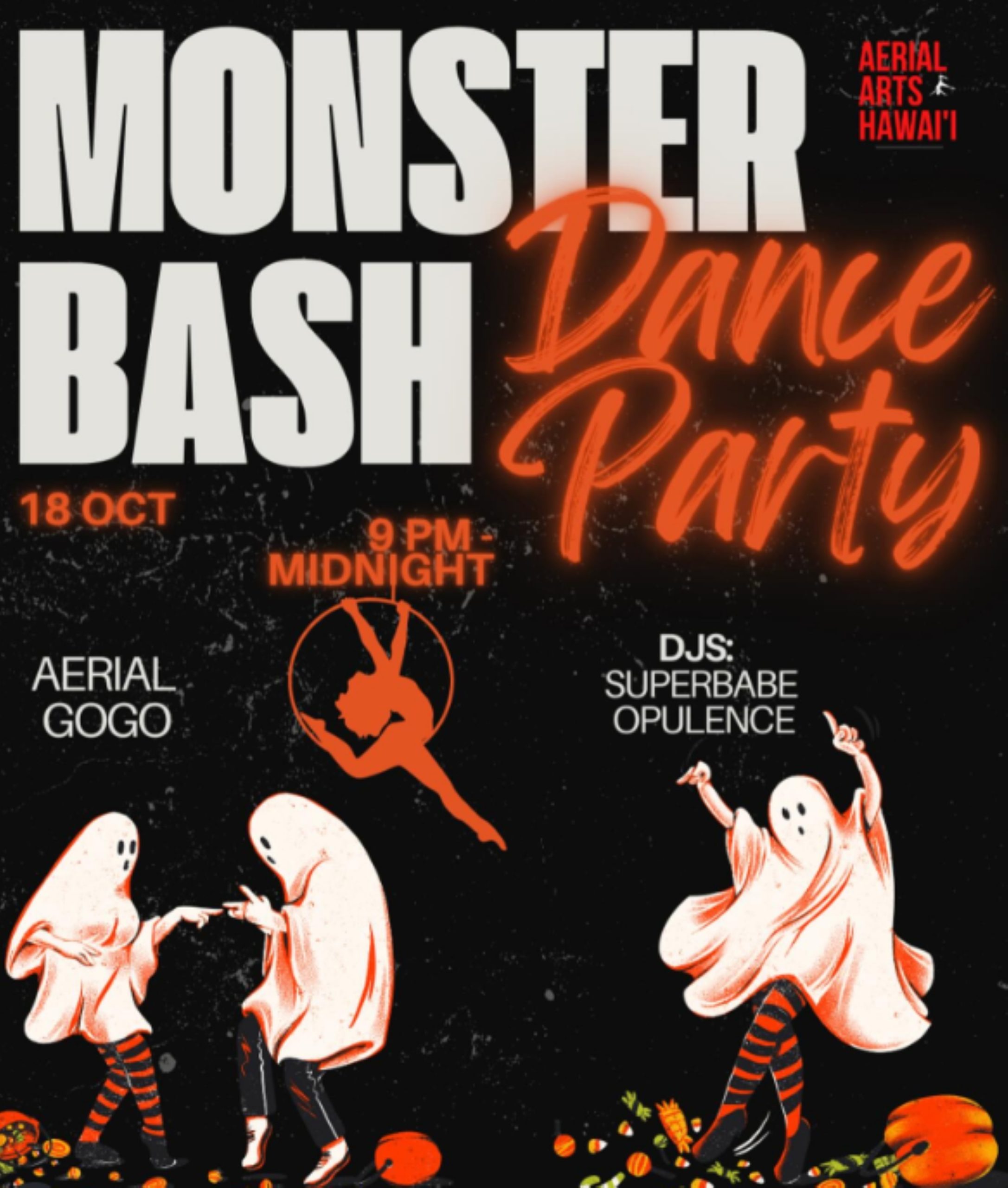 There’s the Monster Mash Mile Fun Run in Hilo if you want to get your bones moving. Aerial Arts Hawai‘i is hosting a Monster Bash Dance Party that’s sure to be a howling good time in Hilo.