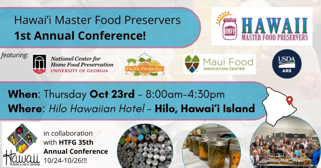 Hawai‘i Master Food Preservers debuts its first conference Oct. 23, with the 35th Hawai‘i Tropical Fruit Growers Conference to follow Oct. 24-26.