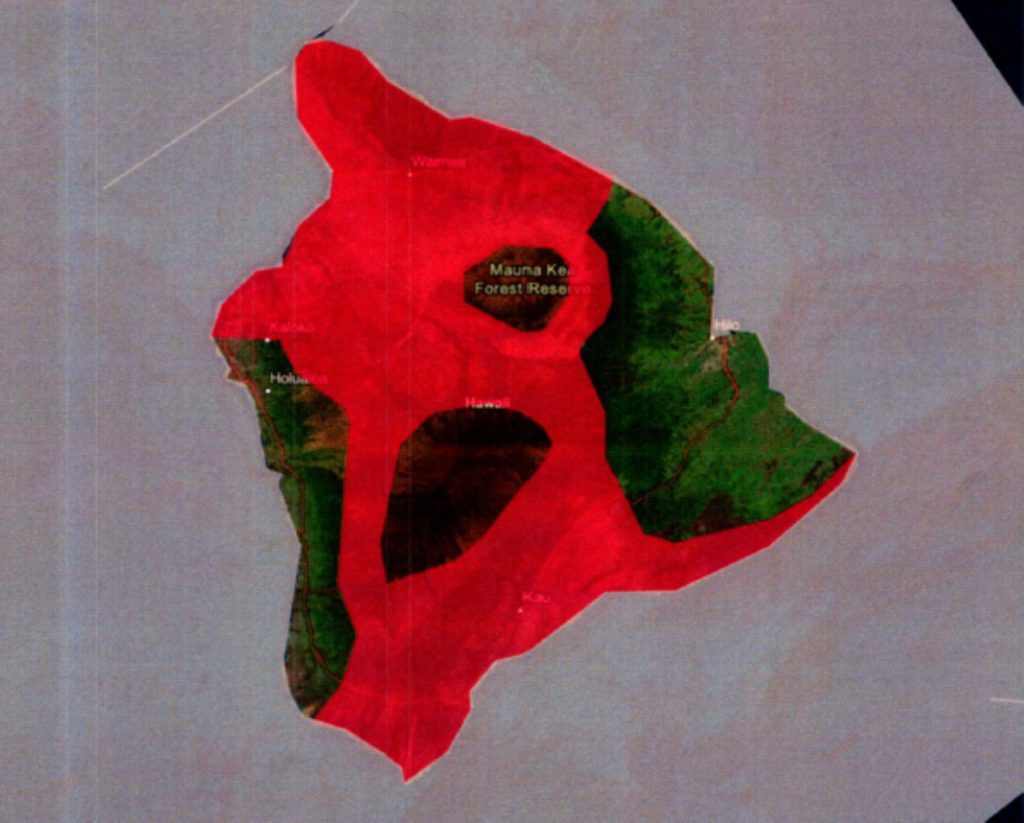 Included in the red flag advisory are all or parts of Hāmākua, North Hilo, North and South Kohala, North Kona, Kaʻū and Puna.
