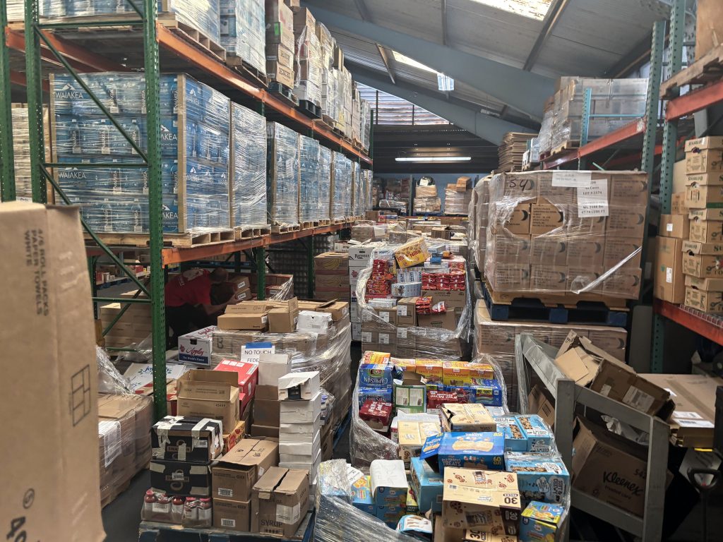 The Food Basket has seen an increase in food donations, which are seen at its warehouse in Hilo. (Kelsey Walling/Big Island Now)