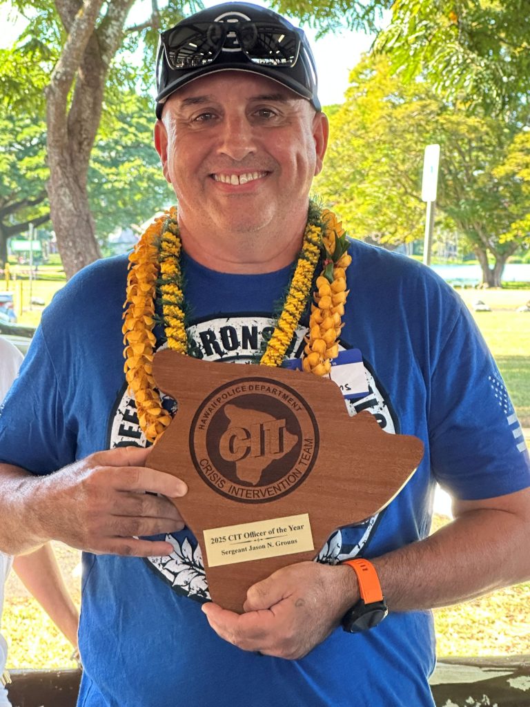 “Crisis Intervention Team training gives our officers the skills and understanding to approach mental health crises with empathy and professionalism,” said Interim Hawai‘i Police Department Chief Reed Mahuna in an announcement about Grouns’ award. “Detective Grouns’ dedication to expanding this program has strengthened our department’s ability to serve every member of our community with care and respect.”